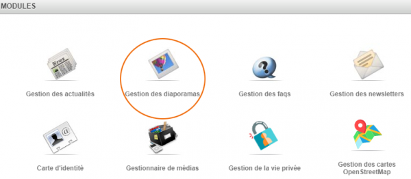 Une fenêtre s'ouvre vous proposant de choisir le module que vous voulez utiliser. Selectionnez "Gestion des diaporamas".