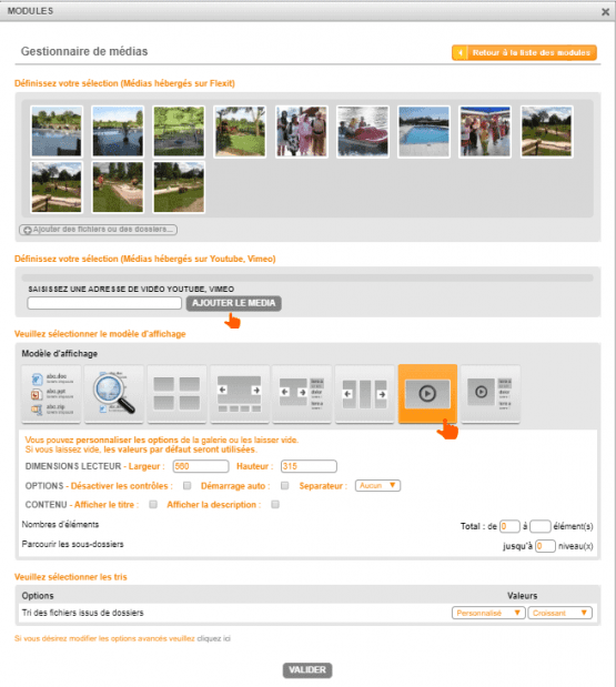 Si vous le souhaitez, vous pouvez encore modifier le tri pour l'affichage des médias sélectionnés sinon, vous pouvez valider en bas de cette pop up de paramètres et enregistrer la page sur laquelle vous vous trouvez.