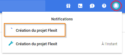 La création de projets sous la console n'est pas instantanée, vous allez devoir patienter quelques secondes. Vous devriez normalement voir dans la barre bleue supérieure une petite cloque animée qui vous informe que le projet est en cours de création. Surveillez quelques secondes cette cloche, une fois la création finalisée vous pourrez y accéder.
