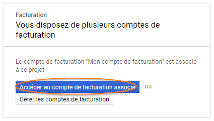 A ce moment là, suivant les cas de figure, vous verrez réapparaitre une boite identique à celle du début de la procédure, mais cette fois vous pouvez accéder au compte associé. Cliquez sur accéder au compte de facturation associé.