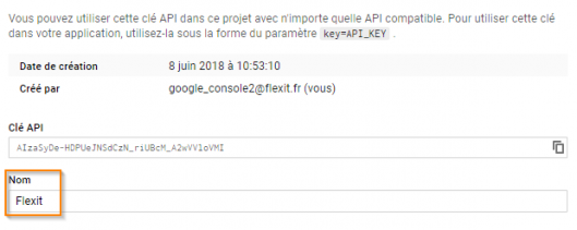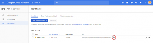 Après avoir enregistré, vous serez ramené à l'écran listant les clefs disponibles. Cliquez sur le bouton pour copier votre clef (entouré en rouge ci-dessous) que nous allons ajouter dans Flexit.