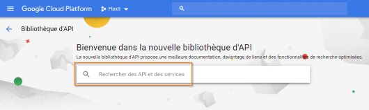 Pour accéder à nouveau au moteur de recherche afin d'activer les autres, cliquez dans le bouton de menu (toujours en haut à gauche dans la barre bleue) et choisissez API et services > Bibliothèque.