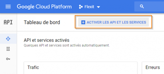 Une fois dans le tableau de bord des APIs, cliquez sur le bouton Activer les api et les services à côté du titre.