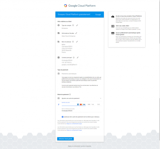 Cependant, il faut créer son compte de facturation pour que la clef soit effective et vous permette d'afficher les cartes haute résolution.