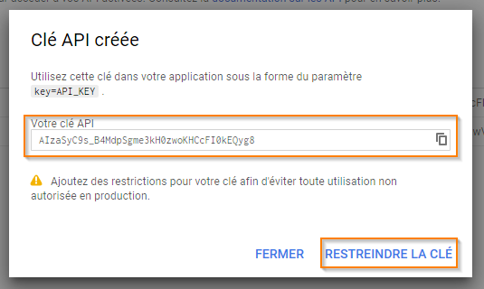 Ensuite, le plus important est de restreindre l'utilisation de la clef afin que personne ne puisse vous voler du quota.