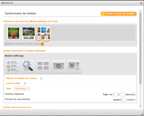 Définir une sélection de fichiers ou dossiers pour le module gestionnaire de médias