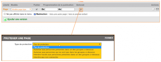 - Extranet, pour gérer les droits d'accès à cette page, selon l'identification préalable des internautes