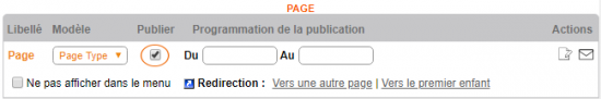 - Ne pas afficher dans le menu : permet d'avoir une page publiée mais non visible dans les menus ou le plan du site
