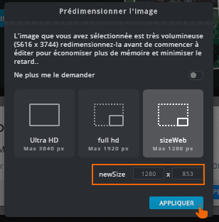 Dans notre exemple, l'image mesure 4000px, ce qui est trop grand. Selon l'utilisation de l'image, vous pourrez ajuster sa taille. Ici, elle sera optimisée pour une intégration dans un contenu de page.