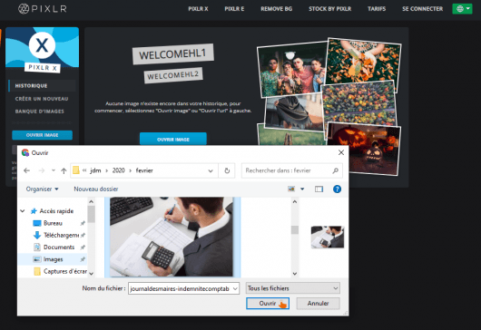 Cliquez sur OUVRIR IMAGE et une fenetre s'ouvrira pour aller chercher votre photo dans vos dossiers