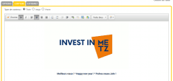 Dans votre popup, vous allez pouvoir inserer plusieurs types de contenu :- Texte : Vous avez à votre disposition un éditeur de texte standard où vous allez pouvoir insérer votre texte, vos liens et vos images à votre convenance.