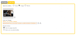 - Image : permet d'insérer l'image de votre choix et d'y ajouter un lien.