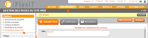 Disponible dans l'onglet "SITE INTERNET", l'option "Paramètres popup site" est l'outil indispensable pour créer et gérer vos propres popups.