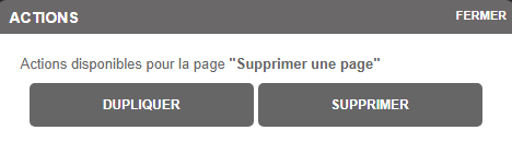 Ou cliquer sur le bouton "Action" dans l'édition des paramètres d'une page et choisir "Supprimer".